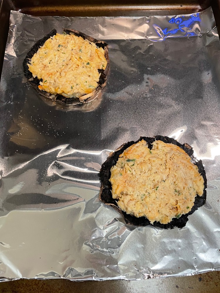 I love mushrooms, especially stuffed with crab meat.🦀 My quick and easy cheat to stuff portobello mushrooms – use frozen crab cakes.😆