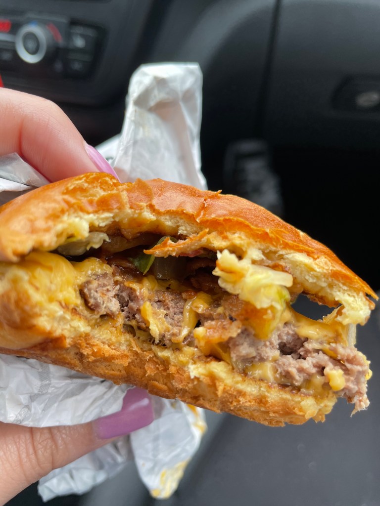 This burger was topped with grilled onions, lettuce, pickles, bacon, American cheese, BBQ sauce and smoky mesquite butter all on a toasted brioche bun! I am a huge fan on Sonic’s burgers. They always have a nice grilled char taste but still juicy and flavorful!