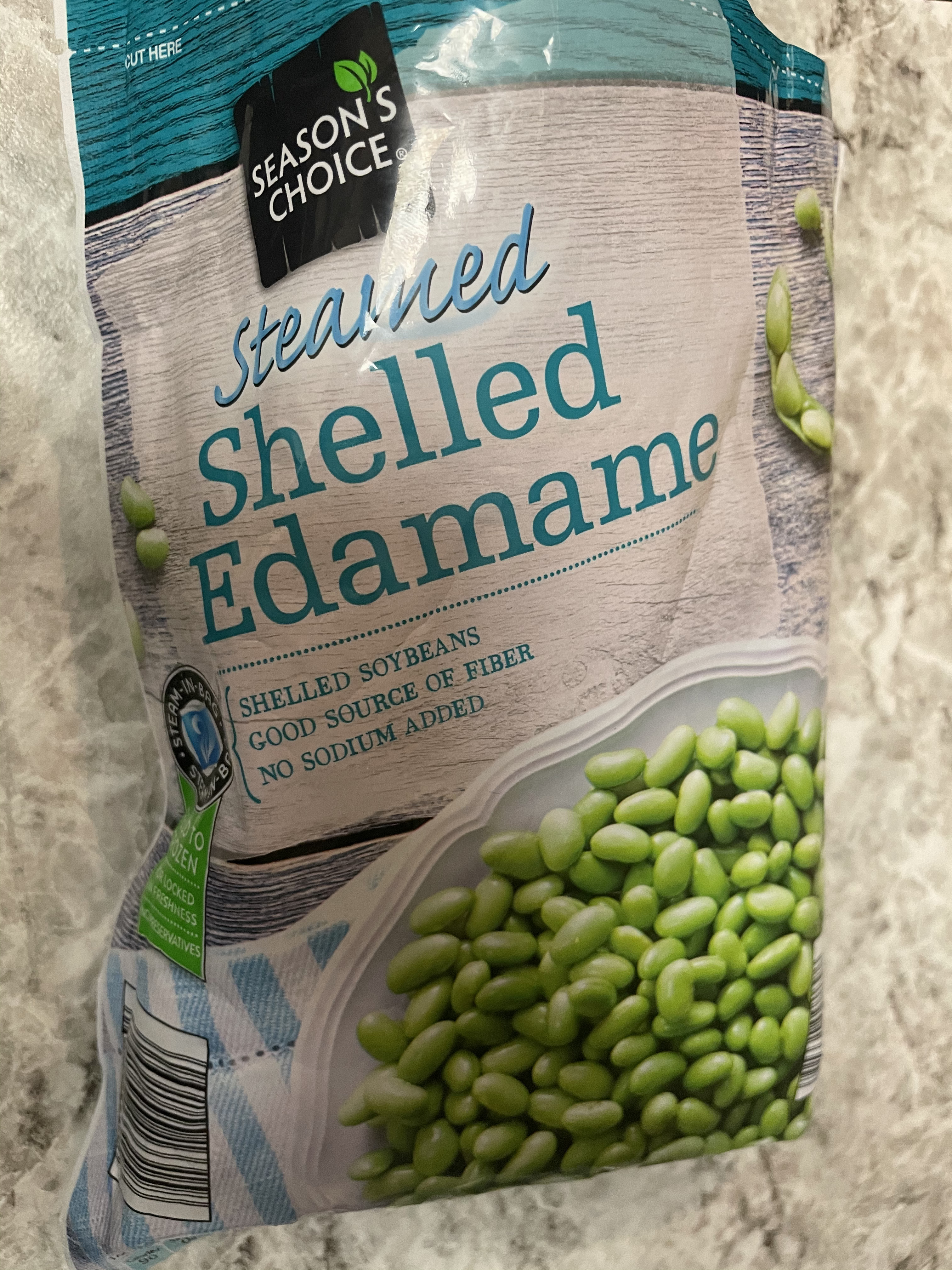I keep shelled edamame in my freezer. I typically find it at Aldi. I thawed out about 1 cup of edamame in another bowl.