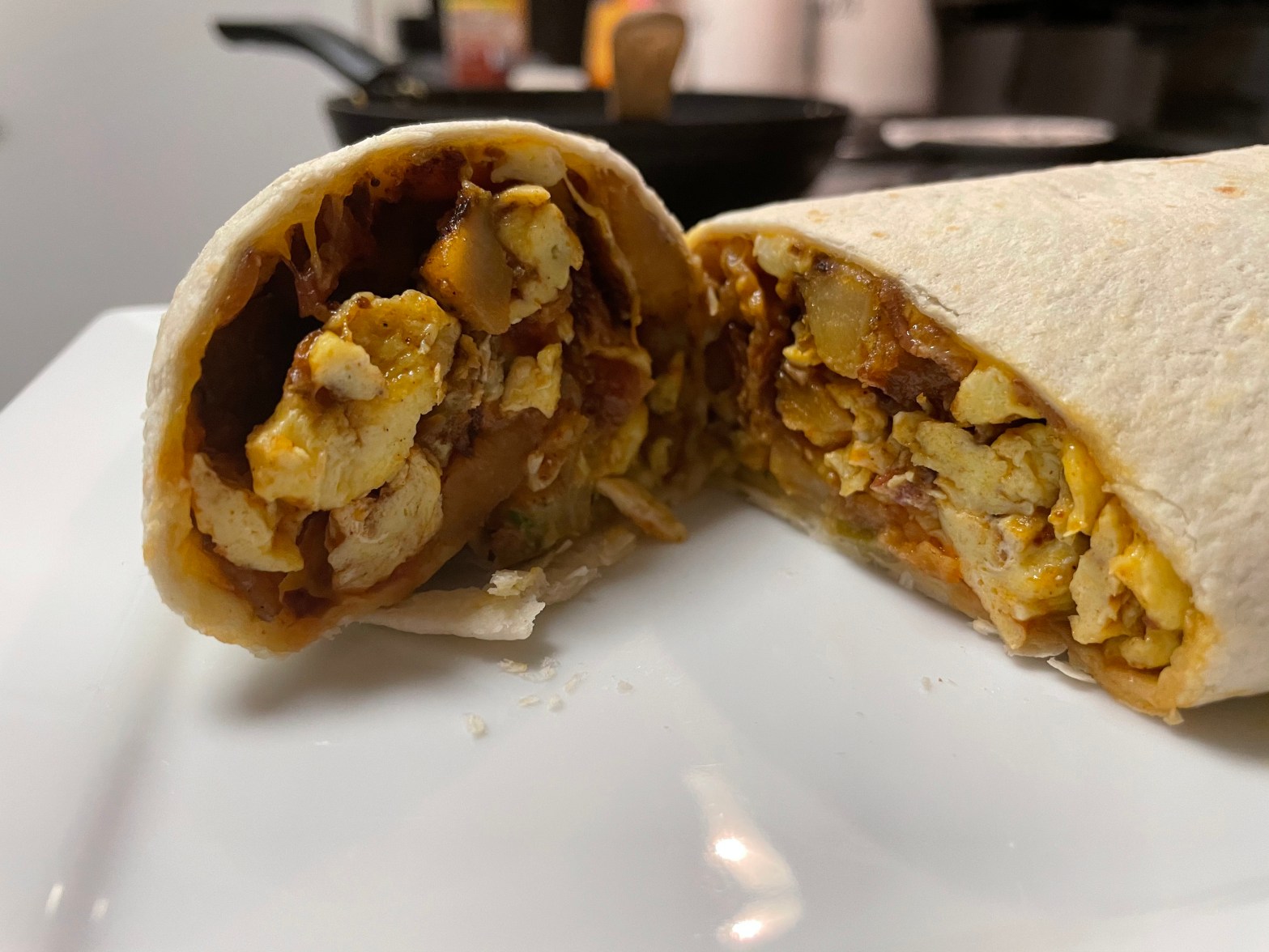 After a few minutes and the tortilla has a nice golden color, I remove from the pan. Cut in half and serve. Sometimes we will serve with salsa, guac or sour cream on the side. All depends on the morning and our mood! What do you like in your breakfast burritos?🌯 Do you have a favorite place to get them?! We will have to find a new place now that sonic’s are no where near us. LOL