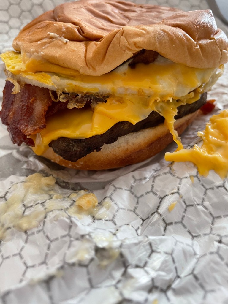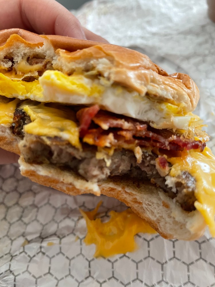 Breakfast baconator: Hands down the best breakfast sandwich! I love bacon and I love breakfast sausage. This sandwich has the best of both worlds for those that do not like to choose, like me. LOL The broiche bun is stacked with a sausage patty, American cheese, bacon (lots of bacon), egg and a cheese sauce! For me its the cheese and sausage patty that makes this sandwich. The bacon sets it over the edge. I highly recommend this sandwich! Rating: 10/10