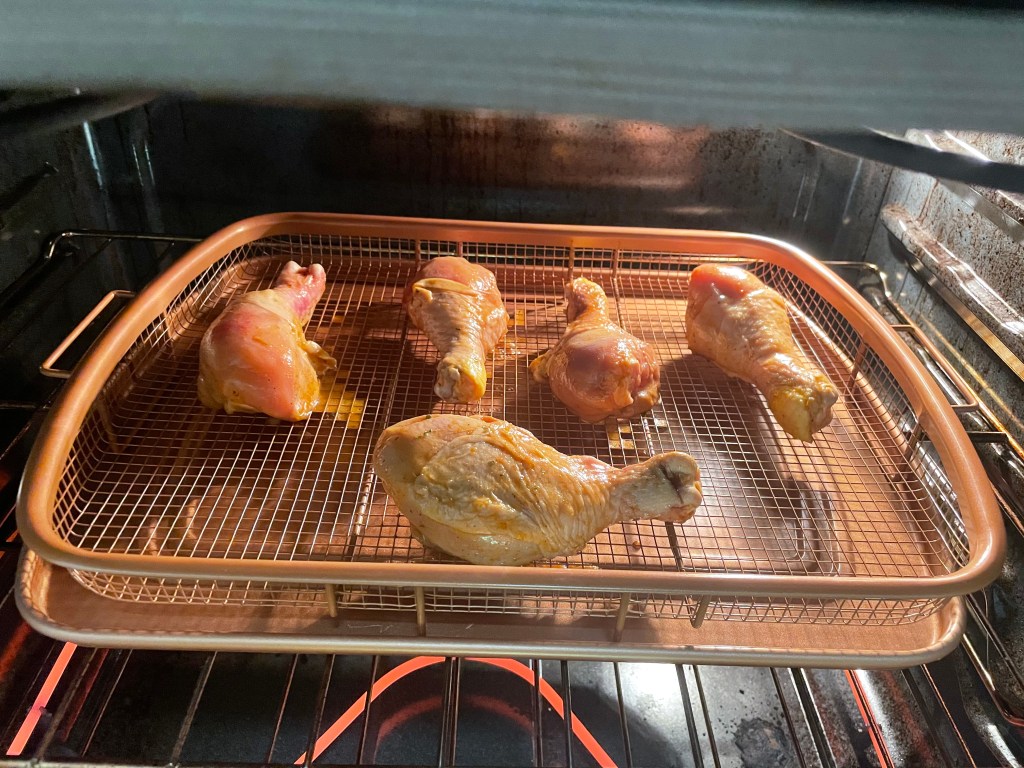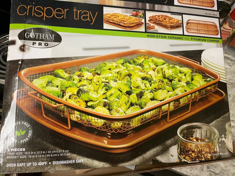 I found this crisper pan at Costco. I only made chicken so far. But it is perfect at cooking chicken in the oven and getting a crispy result! I am super excited to try roasting veggies next!