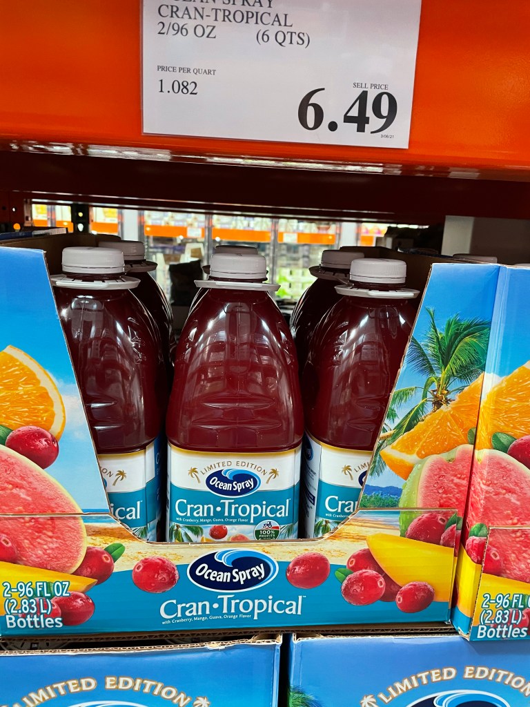 More finds at Costco! Can-Tropical is the perfect cranberry juice for drinking, mixed drinks or to make cranberry limeades.