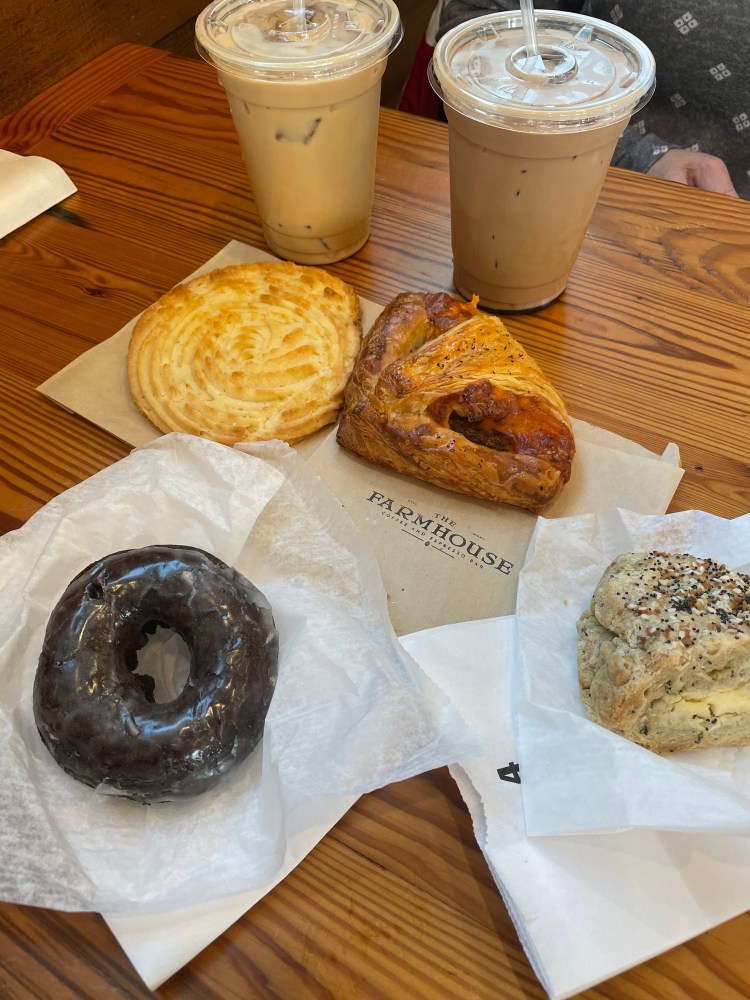 Menu: They offer a variety of pastries, cookies, donuts and scones. We has such a hard time deciding what we want, so of course we ordered a variety to share! We ordered a cream cheese cookie (rating: 9/10), turkey sausage, egg and cheese croissant (Rating: 10/10), chocolate glazed donut (Rating 10/10), and everything bagel scone (rating 10/10). Everything was delicious and we recommend it all. The croissant was buttery and savory as well. Their donuts are moist, and not dry or too sweet. The scone was my favorite with the cream cheese in the middle. It was similar to eating am everything bagel, but more like a scone. It was the perfect combination!