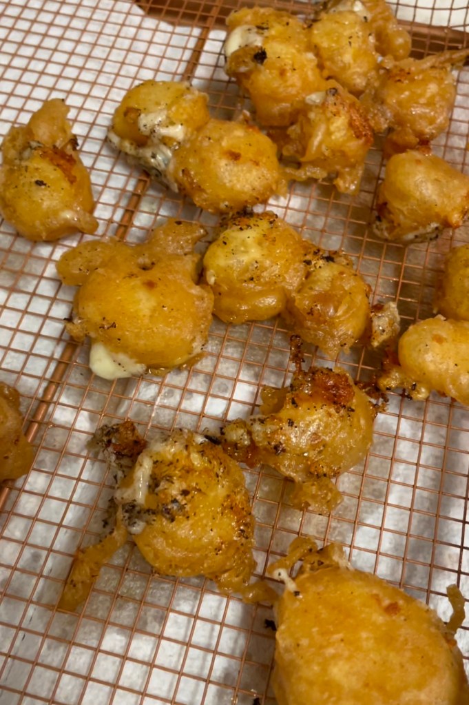 Who doesn’t love cheese? Specially fried cheese curds! For our most recent girls day out, I decided to make fried cheese curds with a hot honey dipping sauce! Here is how it went!