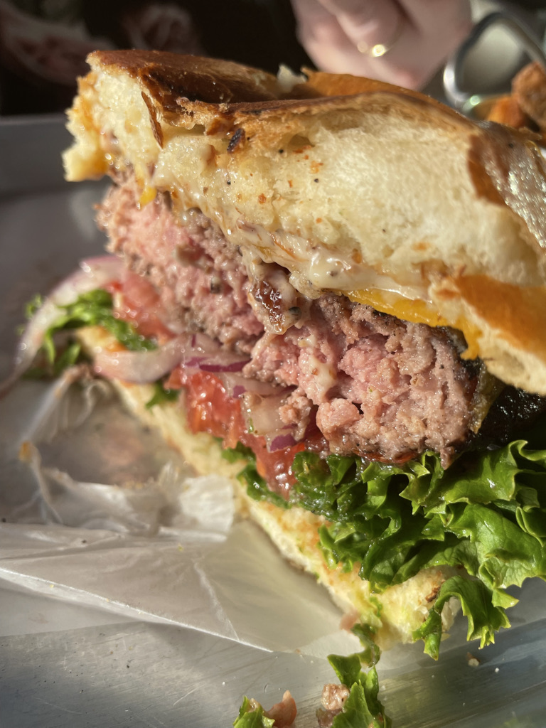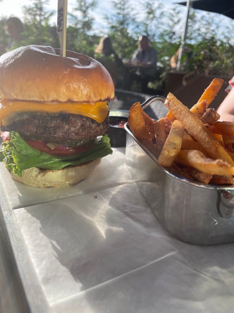 Cocktails/Drinks: They have a variety of drinks to order. Make sure you check with your server about any seasonal drinks. They had a Frose, which our server really recommended as her favorite. We were not feeling s frozen drink with our meal. I opted for the Por-Que-Bine a tequila cocktail of course. It was very light, refreshing and not sweet at all (8/10). Lia ordered the Bramble On, which our server said was another favorite. Lia gives it a 9/10; it’s great if you like gin and tonic! We actually were able to sample the Frose later. Our server was the best and she was right. The frose was delicious and a perfect summer frozen drink! However, it just did not pair well with our pizza and burger so we opted for a second cocktail. Lia ordered another Bramble On. I saw they had mocktails on the menu including a lavender lemonade. So I asked if I could spike it with tequila and I could! It came out the prettiest cocktail there was. A beautiful purple color. Homemade lavender syrup and lemonade was the perfect combination with tequila (10/10). Click here to see the cocktail menu.