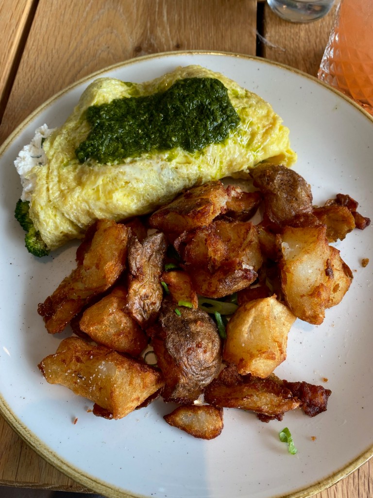 For our entrees, Lia ordered two eggs (scrambled) with bacon and breakfast potatoes. Tammy ordered the broccoli French omelet and I ordered the smoked salmon omelet. Again, we have to give everything a 10/10 because it was all so goooood! The breakfast potatoes were the best we’ve ever had and they get a 12/10 rating!  To see more of the menu, click here!