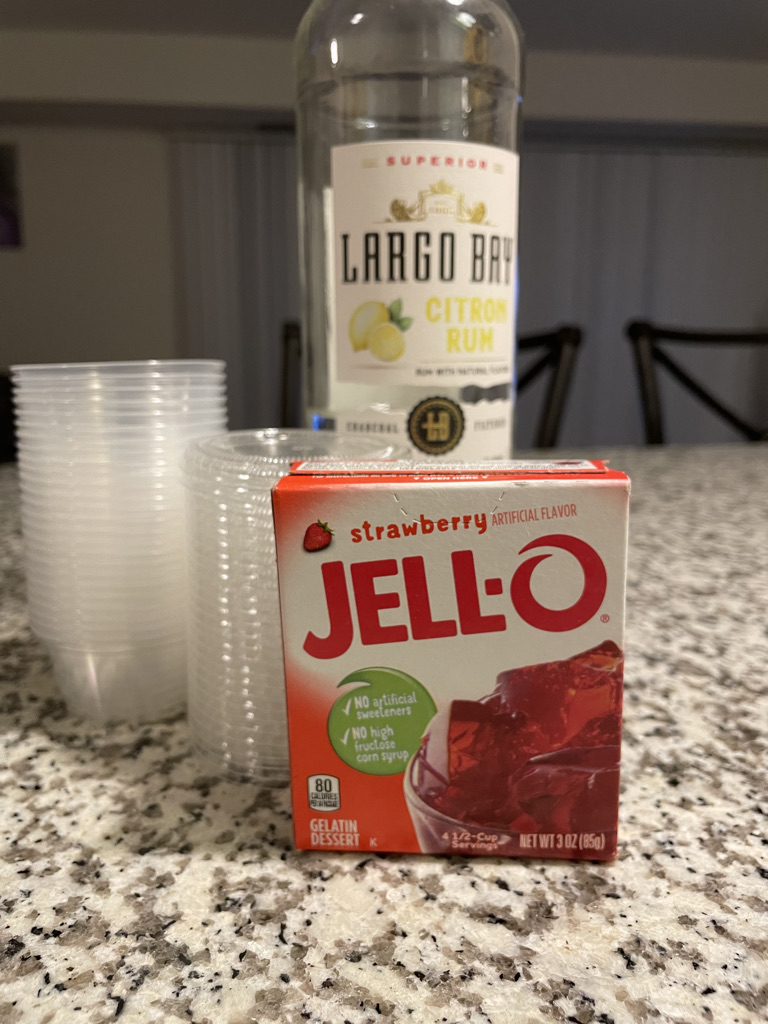Jell-O is pretty easy to make. It’s 1 cup of boiling water to dissolve the packet then mix in 1 cup of cold water. To make them fun Jell-O shots I just make the cold cup alcohol! Or a combination of alcohol and water, depending how lethal we want them LOL. It is all about the combinations and pairings of flavors that make it perfect.