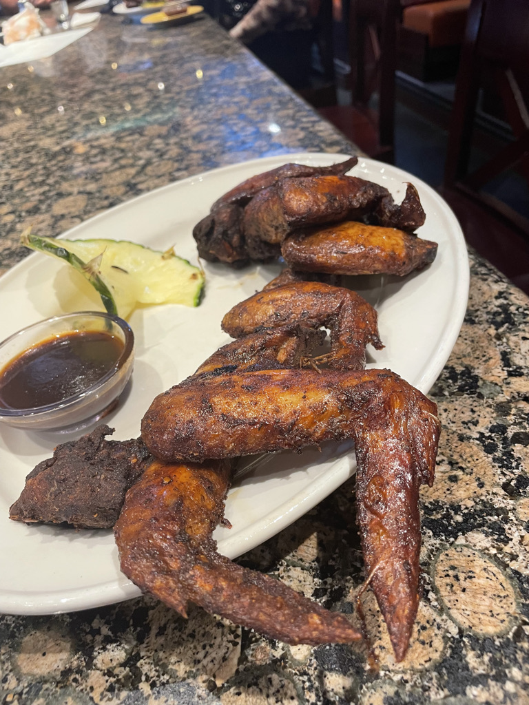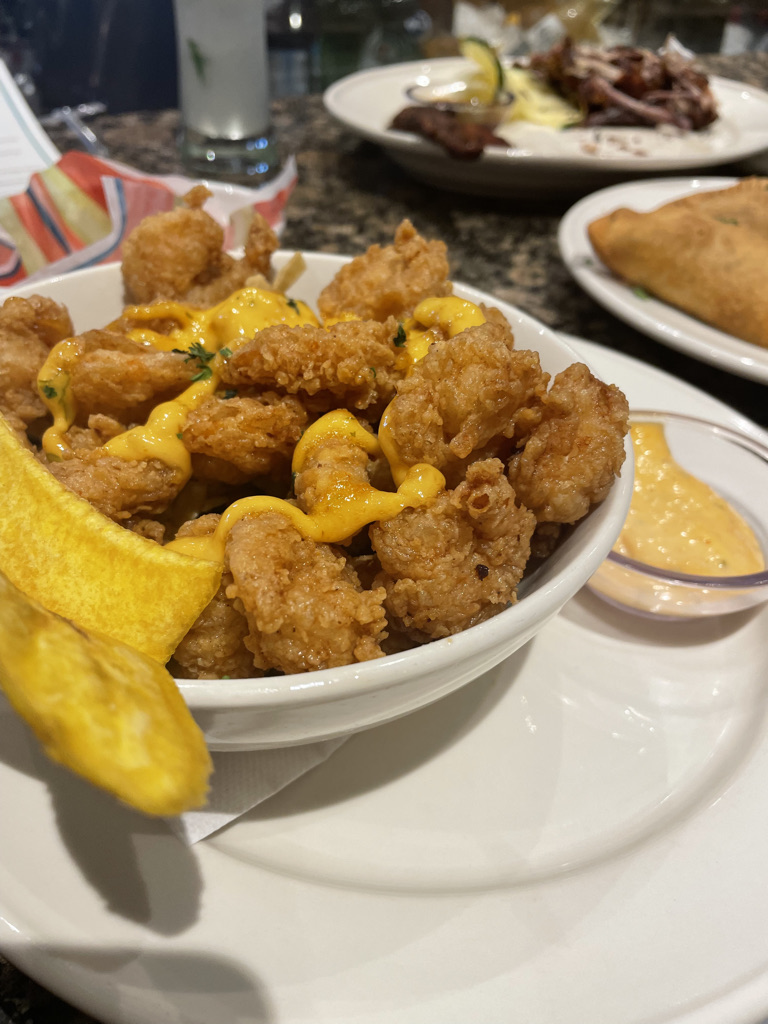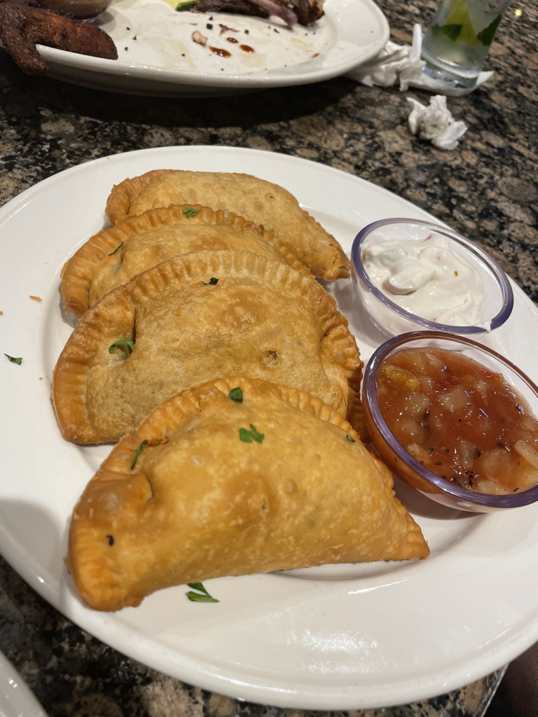 Menu: Like most places, it a pretty big menu that can be hard to pick from. But I stuck to their happy hour menu to make it easier on myself LOL. We ordered their Jamaican Jerk Wings (8/10), and the yuca cheese sticks (10/10). We decided to order another round of drinks, which for me also means more food LOL. So we then ordered the firecracker shrimp (10/10) and beef empanadas (8/10).