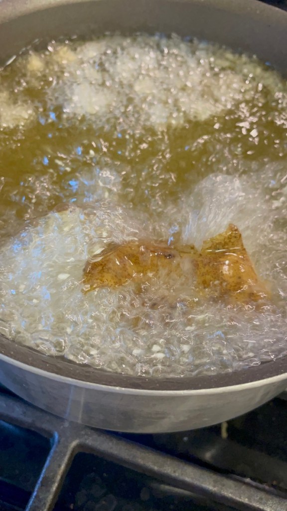 Once the oil was heated, I placed the smashed potato in the oil and let the fry until a golden crispy brown color. When they were finished, I removed them and salted them as they were cooling. Like I said, they turned out pretty good and pretty close to Lola’s potatoes. I mean to the eye they look the same don’t they? I don’t think I would do anything different next time. I think I just need a deep fryer because it would make it so much easier hahaha.