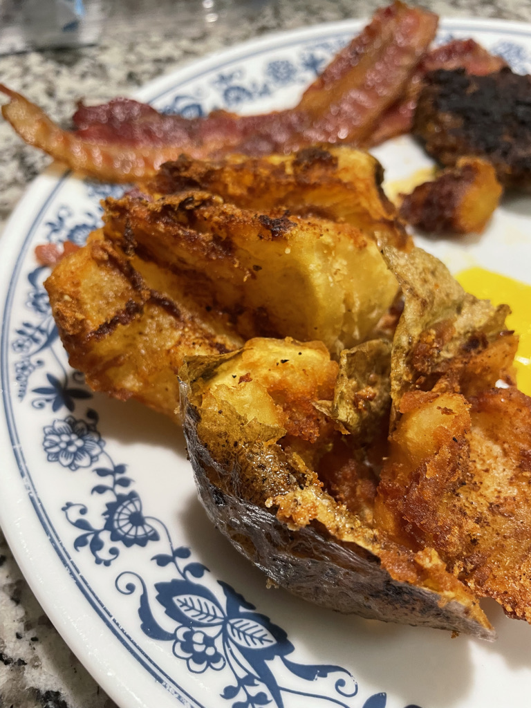 Once the oil was heated, I placed the smashed potato in the oil and let the fry until a golden crispy brown color. When they were finished, I removed them and salted them as they were cooling. Like I said, they turned out pretty good and pretty close to Lola’s potatoes. I mean to the eye they look the same don’t they? I don’t think I would do anything different next time. I think I just need a deep fryer because it would make it so much easier hahaha.