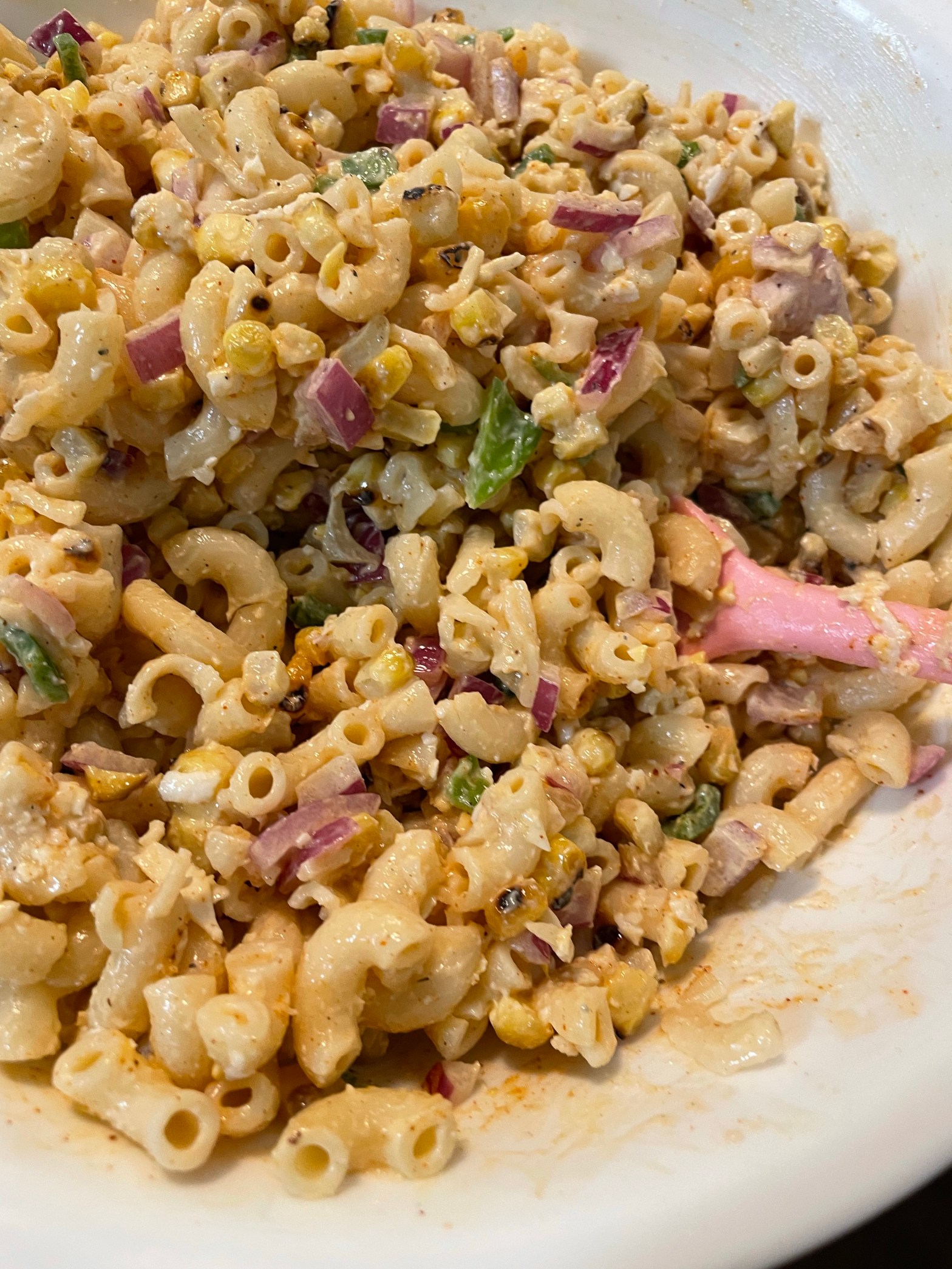 With an abundance of corn, Mom and I decided that we needed to find other recipes and ways to use it so we were not have corn on the cob every night! First up was Street Corn Macaroni Salad.