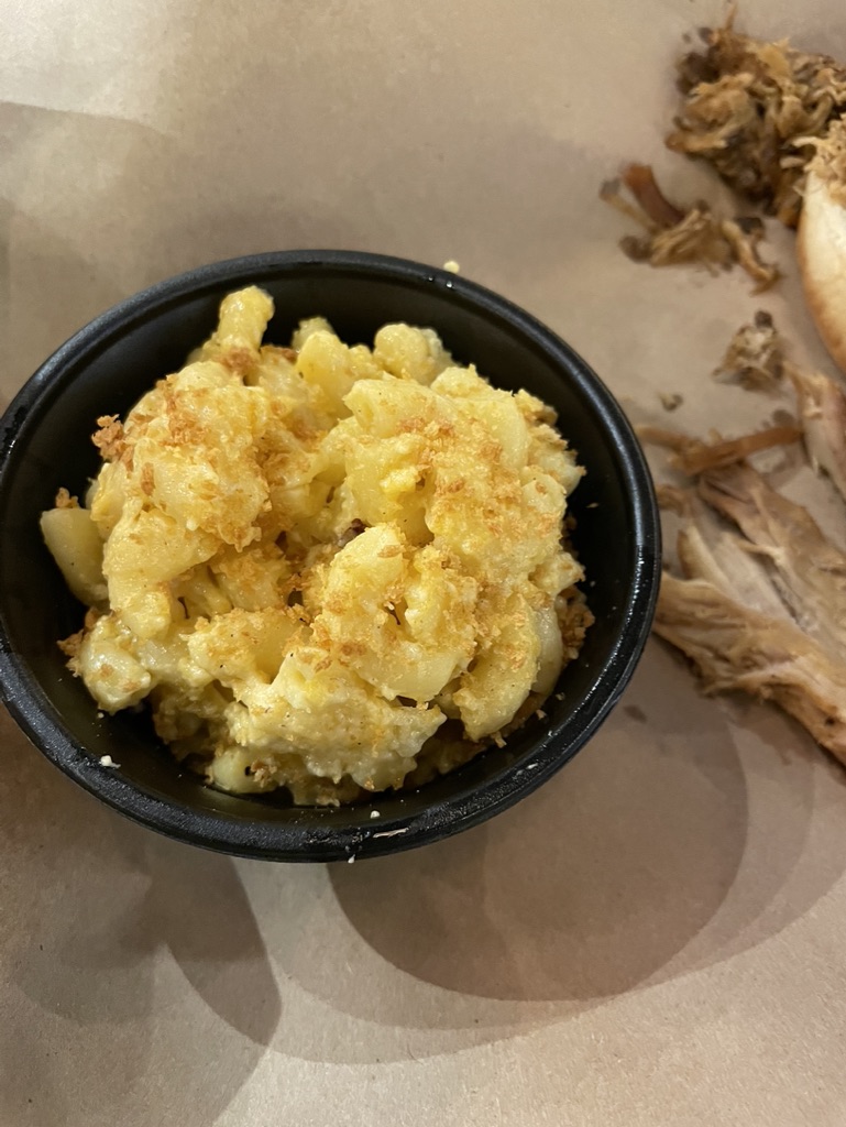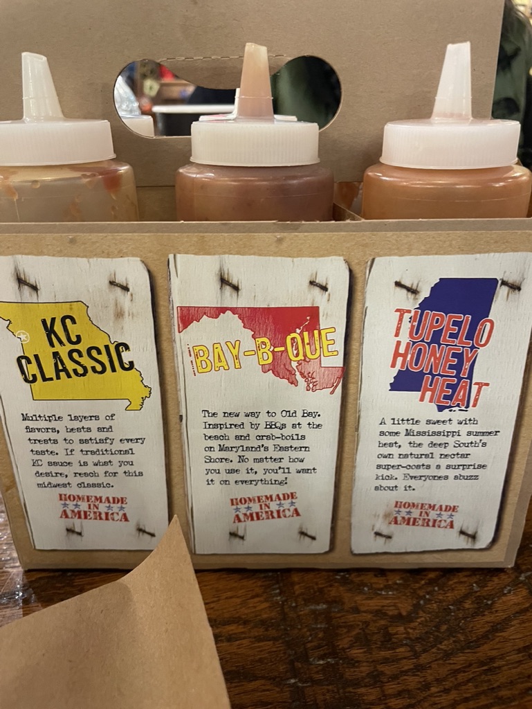 Menu: I wasn’t sure what I wanted except for mac and cheese. That was a definite order. After being stuck in the car for so long, I decided on a pulled pork sandwich and a side of mac and cheese. Mom ordered the beef brisket with baked beans and dad ordered the smoked sausage with fries. So we had great variety around the table. May favorite part was sampling their different BBQ sauces and house-made mustards. My favorite sauce was the bay-b-que, a bbq sauce with old bay! It was a great combination and went well with the pulled pork. The mac and cheese gets an 8/10, creamy and cheesy I like the pulled pork and brisket! The smoke sausage was okay, but not something I would order again. It just doesn’t compare to the other meats! Click here to see more of the menu!
