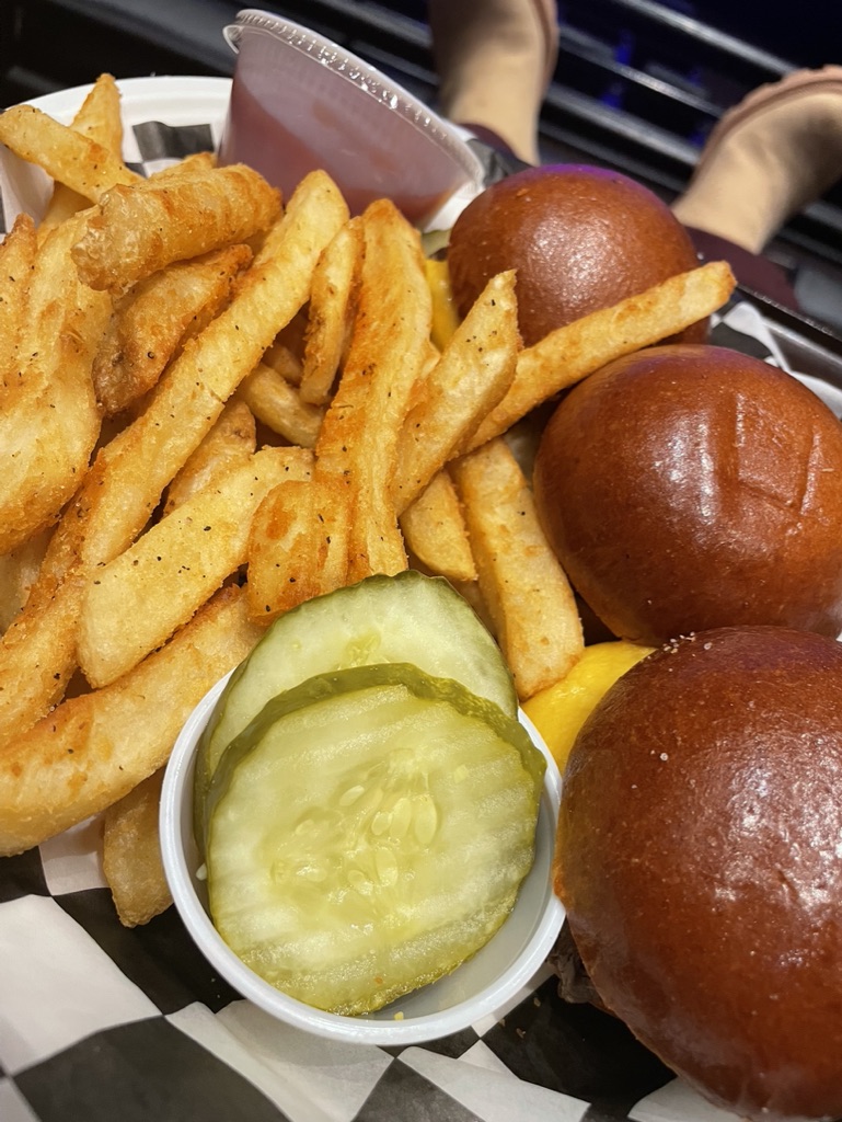 Menu: Fear not, popcorn and your go-to movie snacks are on the menu! But they have more options, including apps, sandwiches, burgers, pizzas and more! Movie theater popcorn was ordered, with extra butter! Always get a bucket, so you can take any leftover home to continue to enjoy (and that is just what I did LOL). I also opted to order the sliders with extra pickles. They were perfect bite side burgers with cheese and pickles! The fries were crispy and seasoned. They were the perfect pairing to the sliders and popcorn! Click here for the menu/ordering ahead of time!