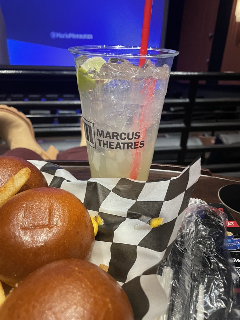 Drinks: The bar offers full service. I ordered a triple tequila margarita! It came in two sizes, and I opted to go big and not go home LOL. It was strong, but not over powerful; a perfect movie cocktail!