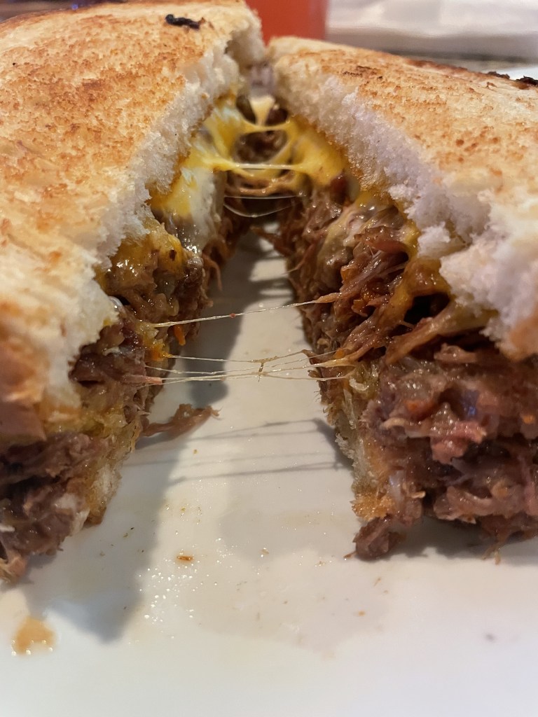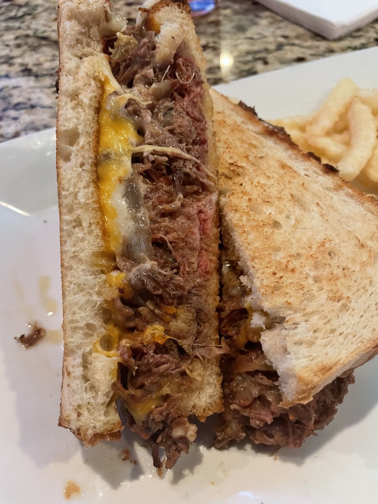 Menu: I was prepared and looked at the menu before arriving. I pretty much already had my meal selected when I first glanced, but I did browse. I opted on ordering the rodeo grilled cheese which was pulled braise short rib with sautéed onions and cheese on grilled sourdough. It gets an 8.5/10. It was packed full of short rib and delicious. I just need a bit more cheese! It was served with French fries that were delicious. Later in the evening, I decided to order stadium fries which were seasoned with old bay and served with a jalapeño cheddar sauce. They also get an 8.5. I love the crinkle fry but I needed them to be a bit crunchier. Click here for the full menu!