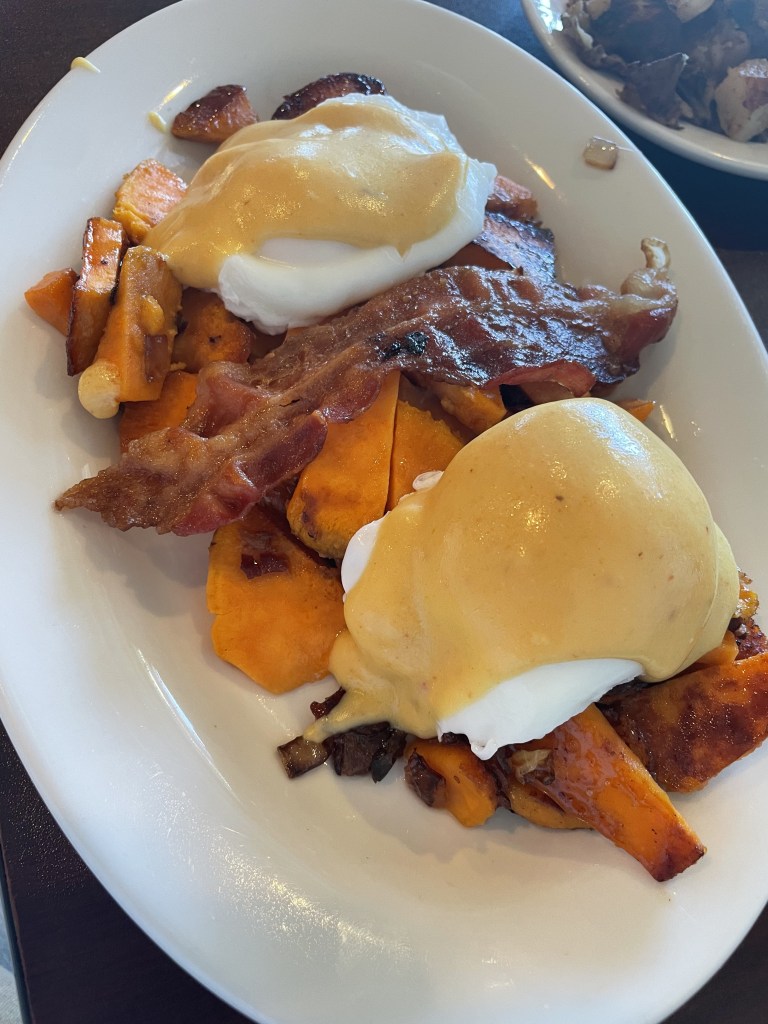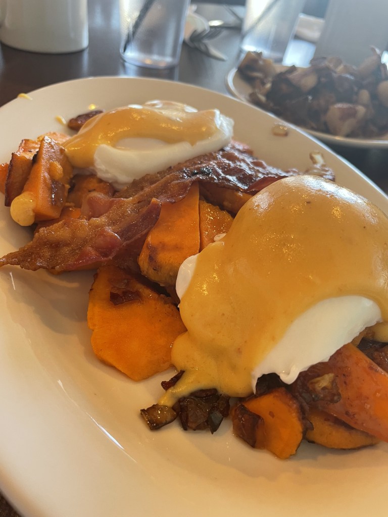 Menu: The menu was not huge, but lots of good options that we just wanted to taste them all. We opted to ordered a few items to share and get a good taste of the offerings. First we ordered the sweet potato hash. It had caramelized sweet potatoes with bacon, topped with a poached egg and a chipotle hollandaise sauce. A solid 9/10. A sweet yet savory breakfast meal. Next item ordered to share was the breakfast bagel. Fried eggs with a chicken sausage and pepper jack cheese on an everything bagel. A solid 10/10. The sausage patty was delicious and pair perfect with egg and pepper jack. I love the different breakfast sandwich combination and it makes me want to mix it more when I order bagel sandwiches LOL. Last to order was a side of cream chipped beef and their potatoes. Another 10/10. They fry their chunky potatoes so perfectly crispy. The cream chipped beef was probably one of the best I have had. You could tell it was homemade and made with love and flavor. Click here to see the full menu!