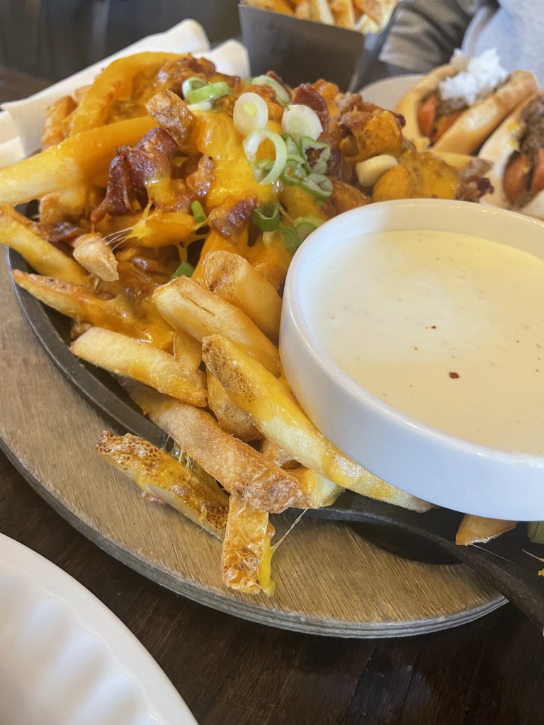 Menu: I did not realize that they would have as many options as they had, plus specials. But the reason for the trip, was to have a Harry hotdog so I ordered two! LOL They were topped with mustard, chili meat and raw onions. A delicious combination I was not expecting. I would rate them at a 7.5. It was not my first choice of toppings, but it was a pretty freaking delicious combination in every bite! I prefer fire cooked hot dogs, so I would have just like the dog cooked and burnt a bit more. But still a win of an order. I also had to order some of their rodeo cheese fries. It was topped with cheese, bacon and scallions and served with ranch. A huge ass platter, but so delicious and perfectly cheesy. Their ranch had to be homemade as it was rich, creamy and paired very well with the fries. They get a solid 10/10. Click here to see the menu!