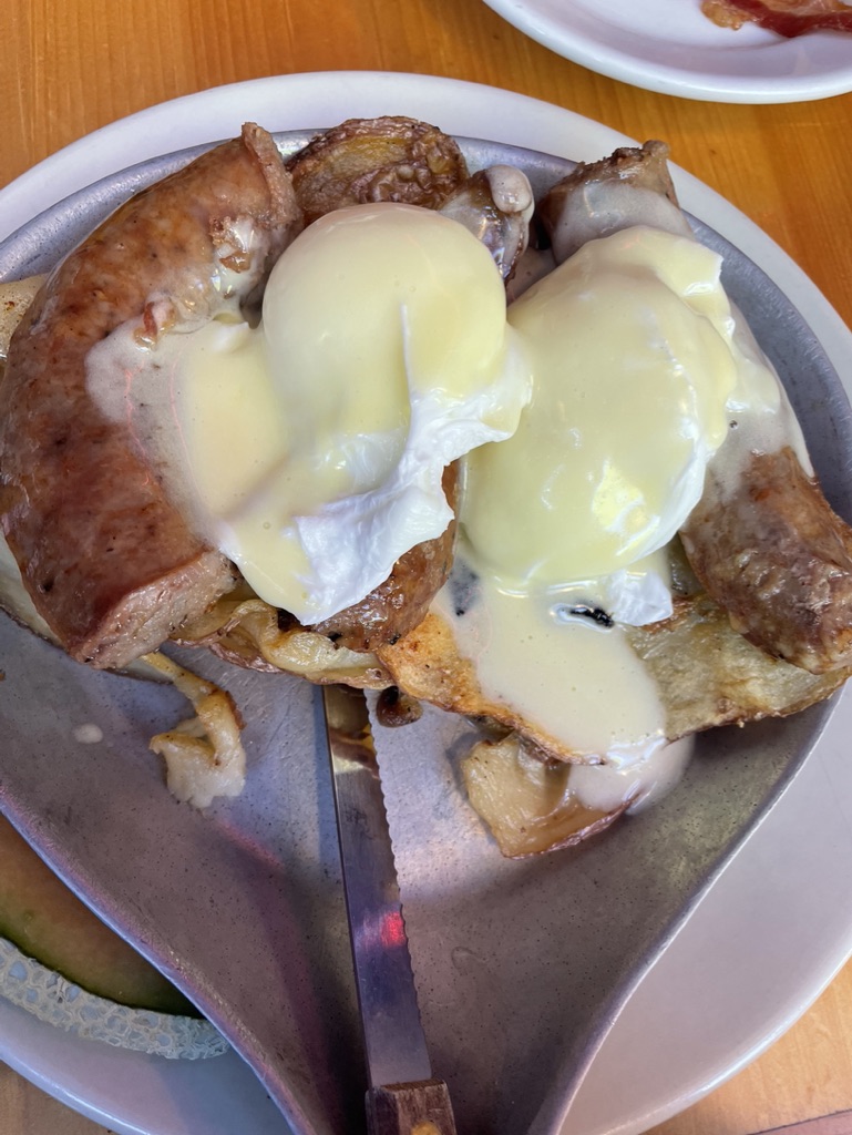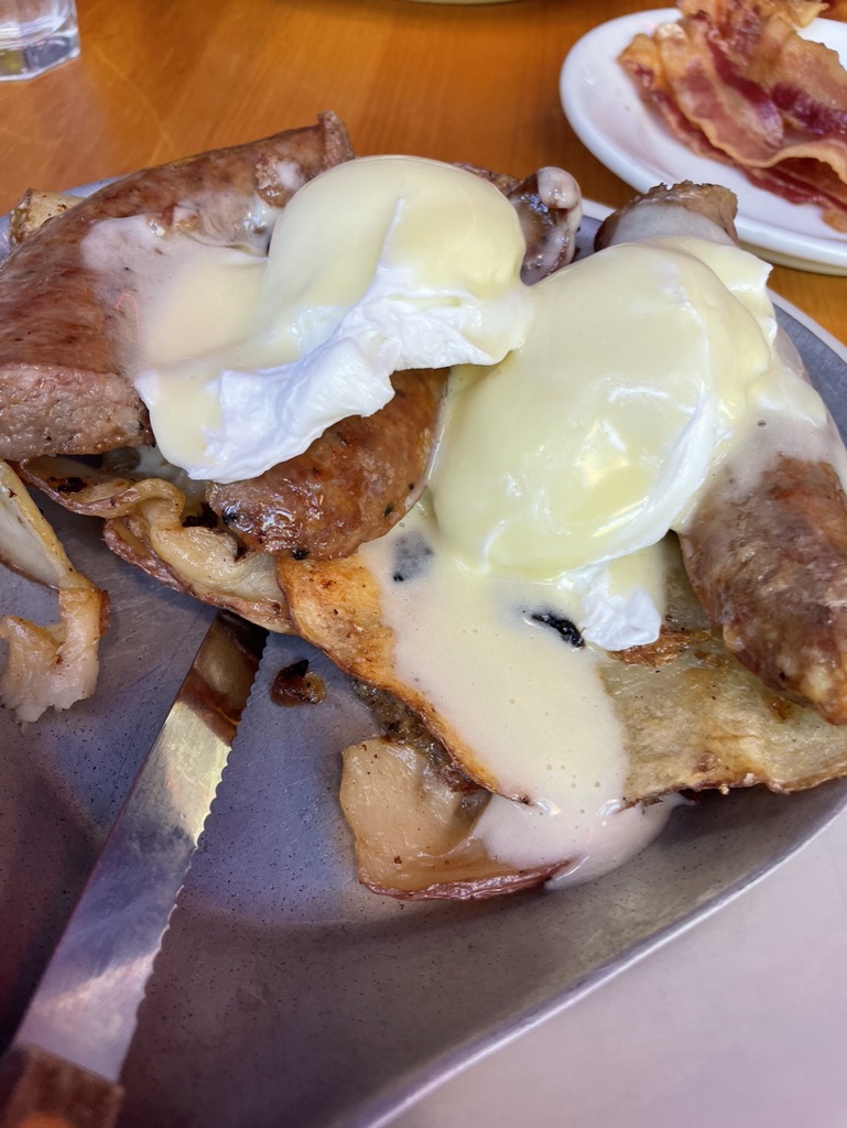 Menu: The menu has plenty of options. Which you know it mean’s I had a hard time deciding what to order. I decided to go with one of their “Famous Benedicts.” But then that led to which one LOL. I know a slippery slope. I decided to order the country Benedict and served on top of home fries inside of an English muffin. The sweet sausage was so delicious, and pair perfect with the gooey poached egg. My favorite part was the home fries. They made for a fun dish and they were crispy on the outside but soft on the inside. I also got a side of bacon a perfect salty crunch on the side. Click here to see the full menu!