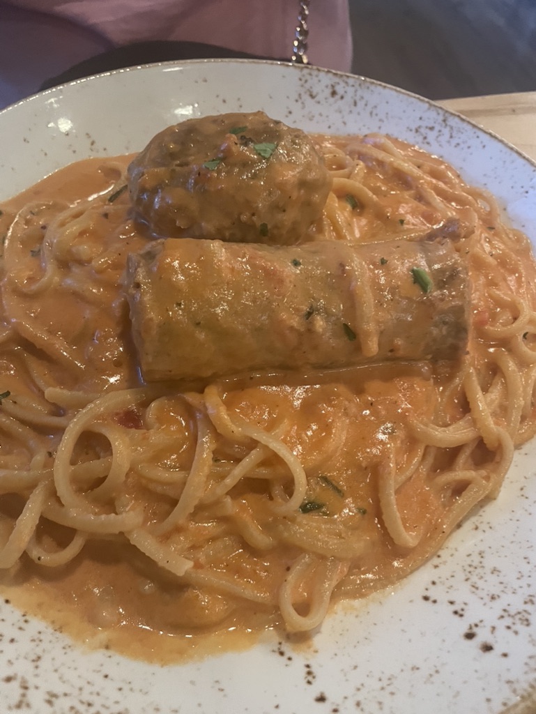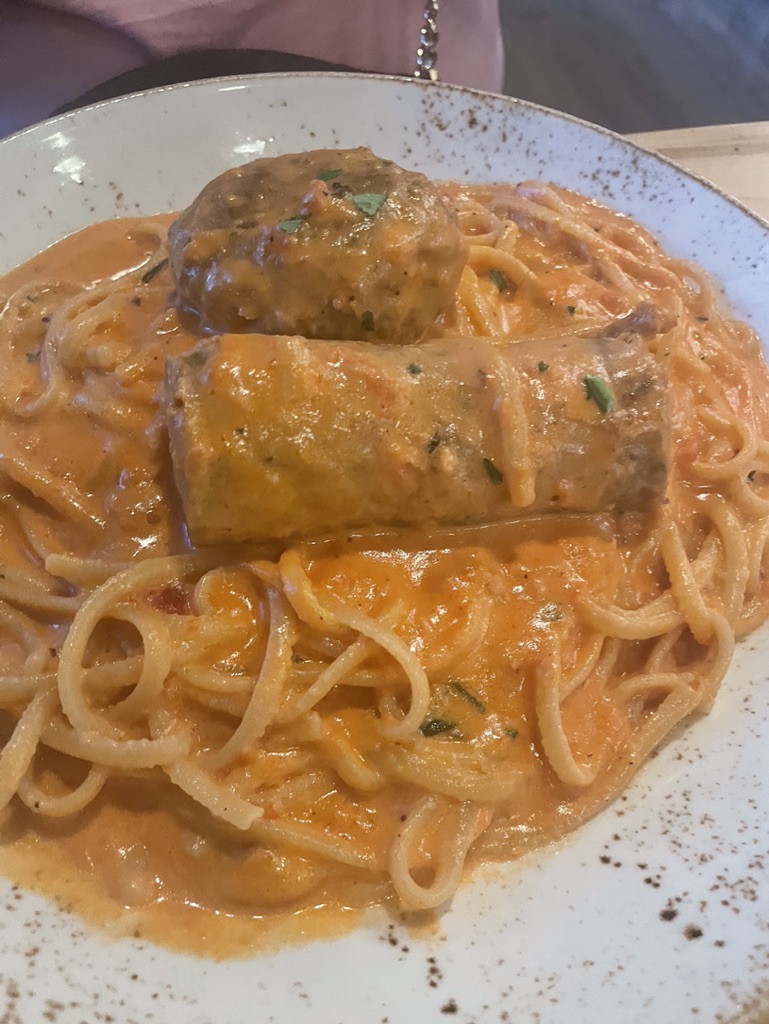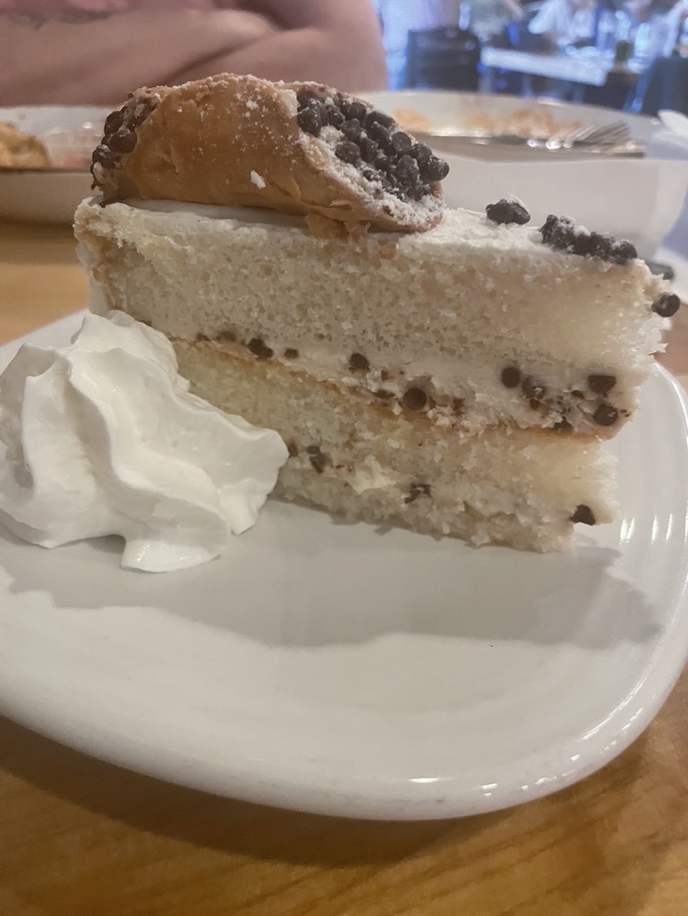 The pasta plates were a full dinner size so we had left overs, but also because we wanted to save room for dessert. When we asked for the dessert, our waitress said she would bring around the dessert tray. I didn’t take a picture of it, but they literally had a tray of options for the night. Some of which are the normal menu options, others that were special and not always offered day to day. We decided to order the cannoli cake. Which was the best of two worlds: mini cannolis on top of a cannoli cake. The cake was moist, bot rich and the filling between the layers was cannoli cream. Full menu is here!
