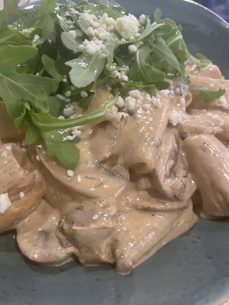Mom decided to do a create your own pasta. She ordered linguine, with pink sauce and one meatball and one sausage. The pasta was fresh and pair so well with the pink sauce. The meatballs and sausage were both very good, but personally I like Fellini’s better. However, I think it is a great option to offer create your own pasta! I Ordered the pasta al fungi. The rigatoni was the perfect noodle to absorb the creamy demi-glaze mushroom sauce. The topping of fresh arugula and goat cheese create the most perfect freshness balance for the dish. I decided to add grilled chicken for added protein. They mixed it in with the sauce and pasta which I thought was a great idea. The flavor from the sauce created the perfect bite.