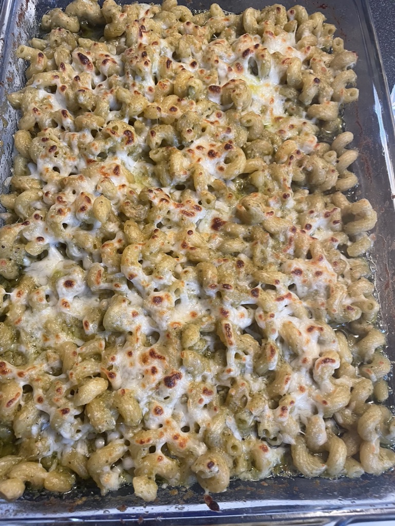 First up was a pasta bake, that I actually put together the night before I bought the chicken LOL. I knew that I was going to buy one and it would be the perfect pairing – and it was!! I preheated the oven to 375. I greased a glass baking dish. Then added a box of cavatappi pasta, a jar of pesto sauce (from Costco), 2 cups of chicken broth, 1 cup of milk, salt, pepper, and shredded parmesan. I covered tightly with foil and then baked for about 40-45 minutes. I then took out the dish, stirred the pasta, topped with some mozzarella cheese and then baked for another 10 minutes or until golden. I served this with some of the rotisserie chicken breast and leg meat. It was a great meal prep meal option and having the chicken on the side was so nice to soak up some of the extra pesto sauce. Pesto was a great way to mix up the pasta bakes I normally make as well!