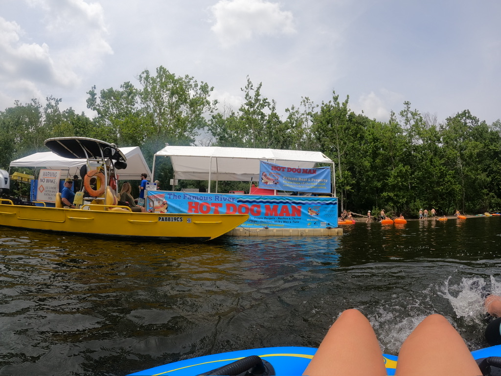 They are specific of what you can/cannot bring on their website. But I will tell you no one was double checking to make sure you were following the rules. They recommend refillable water bottles to not pollute. The tubes do have cup holders. Mine was too big for it but nothing a carabiner clip couldn’t fix! I also had a Bluetooth waterproof speaker that clipped to the tube and my phone in a waterproof lanyard. Music was a fun added bonus that I think if you had a big group you wouldn’t need, but if you have the ability to then I say do it! There were some that had bags, coolers and all sorts of other items. Just remember you have to carry it yourself. There is also a fun “Hot Dog” man that has his boat shake posted up. You can’t miss it because he has signs all alone your float. His boat had a grill and coolers. Selling your refreshments right off an island that you could stop and take a break. A fun concept – if you wanted to prolong the float and fun adventure. We opted to skip it!