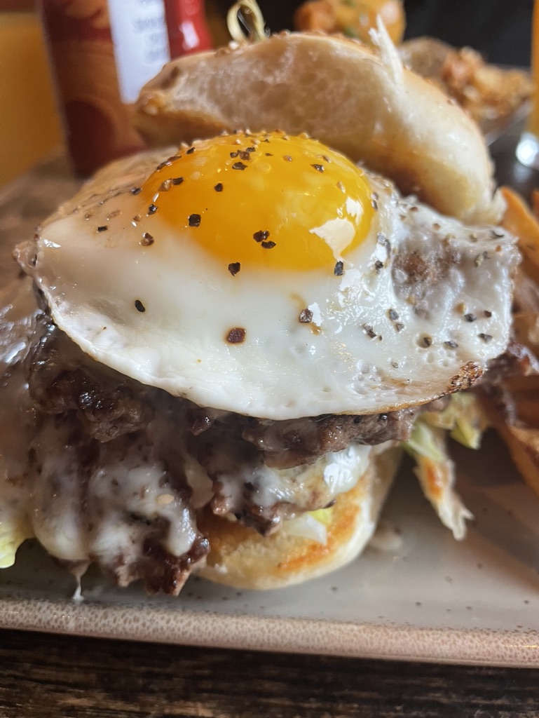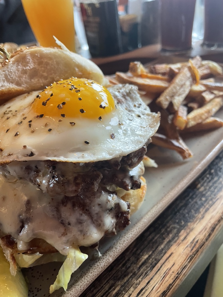Menu: They will post their weekly specials on the social, but they have a main menu as well. I did study it prior LOL, but still had to ask my server for their opinion. I had it narrowed down to the breakfast smash burger and the pork roll cheesesteak. Our server loved both but said she liked the burger slightly more, so I went with that (pork roll cheese steak will have to be next time lol). The burger was topped with cooper sharp cheese, sunny side up egg, bacon onion jam, porcini mushroom aioli, lettuce, tomato, onion, toasted sesame seed bun and served with hand cut fries. 10/10 it was delicious and messy as burgers should be. When I tell you it was delicious, not one fry or bite was left on my plate. I ate every last bite LOL. It was the perfect brunch sandwich in my opinion. But now I want to come back and try some more of their menu, because I don’t think I will be disappointed by anything! See the menu here.