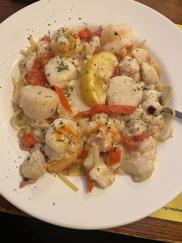 Menu: Their menu is on the larger side with both bar bites and a dinning menu. I did take a peek before coming so I had some ideas but I still had a hard time making the final decision. I first decided to start with the lobster bisque. Which turned out to be the perfect choice as we had a loaf of head bread and butter. The bisque was creamy and well balanced flavor. I did not want to fill up on bread and soup, so I did have to stop myself before the main course. I decided to order the linguini fruit demer. It was their seafood pasta with scallops, shrimps and crab meat in a garlic white wine sauce. It was loaded with seafood. It wasn’t a WOW of flavor but it wasn’t awful either. It reminded me of the entree I ordered from St. Pete’s, but it wasn’t quite that good! I didn’t eat it all, but all my lefts made for another meal to enjoy again. Those are the best, when you can get the most bank for your buck! Click here to see more of their menu!