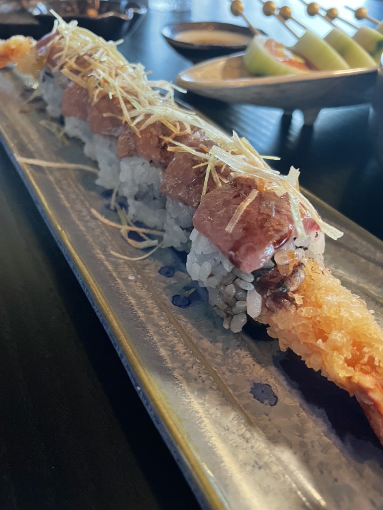 Menu: They have options on options. I looked at the menu prior to going and I still felt like there were so many options that I didn’t know where to start LOL. First was to look at the specials: decided to start with the oysters. They were small in size but packed with a delicious flavor of sea. They were one of the best oysters I had. I was sad to see them go so fast, but the food just got better and better. This is one of those places where you order in stages and try as much of the menu as your stomach allows. After oysters, we ordered round 1: sashimi (no rice) eel, king salmon, bluefin and yellow tail, the summerlicious roll (cucumber no rice) and the wagyu beef uramaki roll. The sashimi was fresh, smooth and ate like butter. The king salmon was my favorite! The summerlicious roll was light and refreshing. Not bad but I am not convinced I need to order it again LOL. The wagyu roll was BOMB! The shrimp tempura was crispy and the beef was buttery. It was like eating a surf and turf roll and I would recommend again and again.
