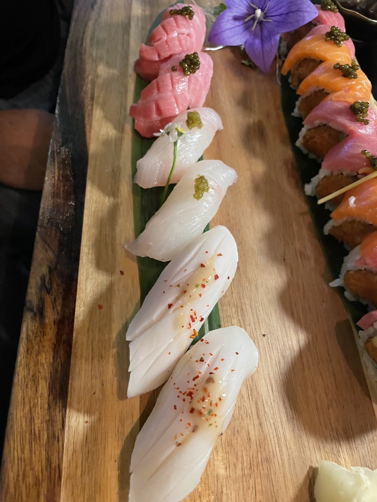 Next round included: the real deal roll and nigiri (with rice) toro, flue and white tuna. The real deal was another delicious roll. The combinations of fish were so perfect and easy to eat. It didn’t feel like you were eating seafood. The toro (aka tuna belly) was my favorite. Another fresh, buttery and smooth bite. Sharing this right, make me wish I was eating it all and not looking/writing about it. Lastly, dessert needed to be tasted. They had an espresso crème brûlée that was the perfect ending to a sushi meal. It wasn’t heavy or dense and not too sweet. I think the spoons they served it with were just as fun to use as it was to eat it LOL. I would definitely order the dessert again! The rest of the menu sounds so delicious as well as the pictures they have posted on social. I want to try more and come back for happy hour next time!