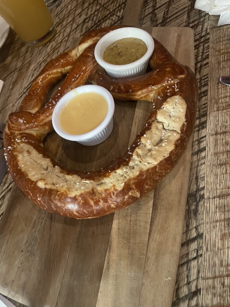 1st Stop for our food tour was National Mechanics. It was a fun older building that had lots of history. We started off strong with one of my favorite ciders, Downeast, a large Belgian style soft pretzel and mac and cheese. The pretzel was good. A good amount of chew but needed a bit more salt lol. It was served with a beer cheese and a spicy mustard. Both paired nicely with the pretzel. But I preferred the cheese slightly more. The Mac and cheese was cheesy and delicious. However, I think it needed a crispier finished around the edge and on top. Or maybe some salty bacon chunks mixed in! We were off to a good start I felt like, with some hearty comfort food to enjoy. I give both an 8/10. The vibe and the rest of the menu and special items did look like it was worth checking check more. So, this may be a spot to come back to and give a full review!