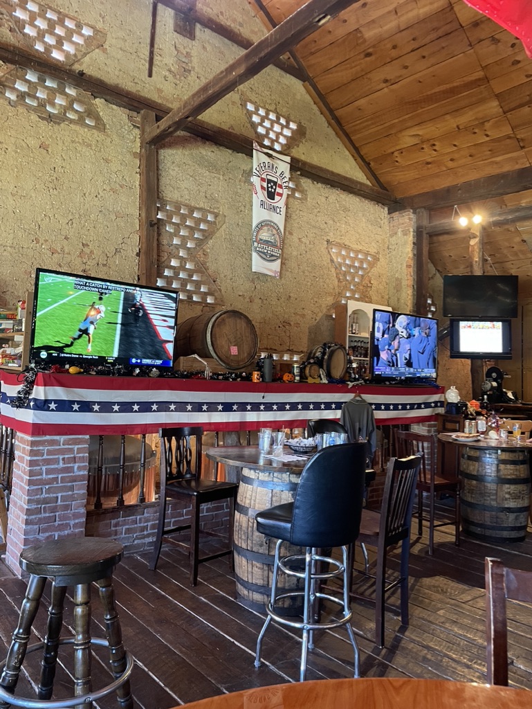 Ambiance/Atmosphere: This spot is tuck outside of town, and you probably wouldn’t stumble upon it unless you know it’s there. The fun part about it is, it’s an old barn that was a confederate hospital during the civil war. It was an old barn that almost gave like a basement bar feel. It wasn’t fancy but it was homey. Staff were friendly and you could see they wanted to create a welcoming/homey atmosphere. They even have several TVs if you are looking to watch games. We were there during college football Saturday, so there were several games playing.