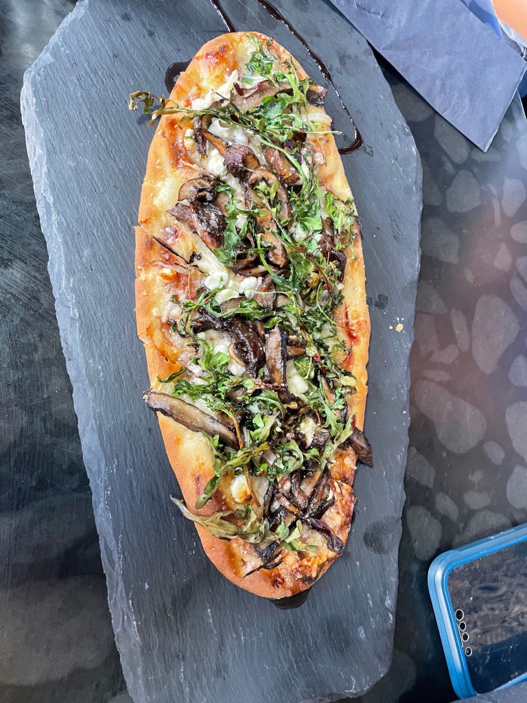 Menu: We had a food tour booked later (more on that soon!) so we opted to just have apps as a little snack. We had some arancini balls, the meat and cheese platter and the mushroom flat bread. The meat and cheese platter had a great variety of bites that were delicious. I also really enjoyed the mushroom flat bread. They made for great sharing plates for snacks with drinks!