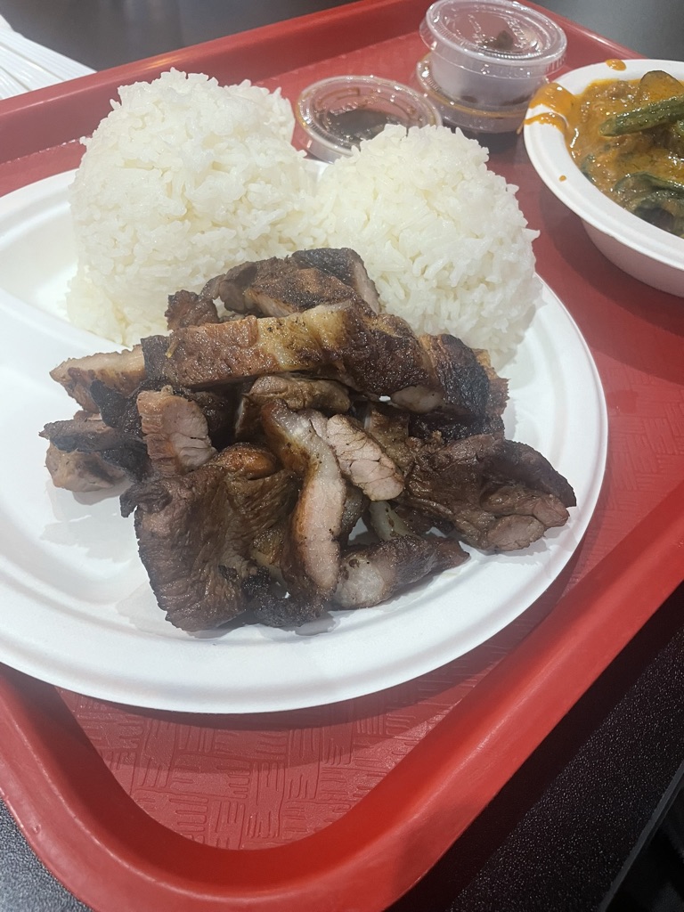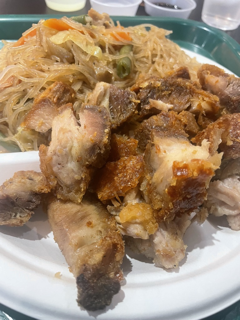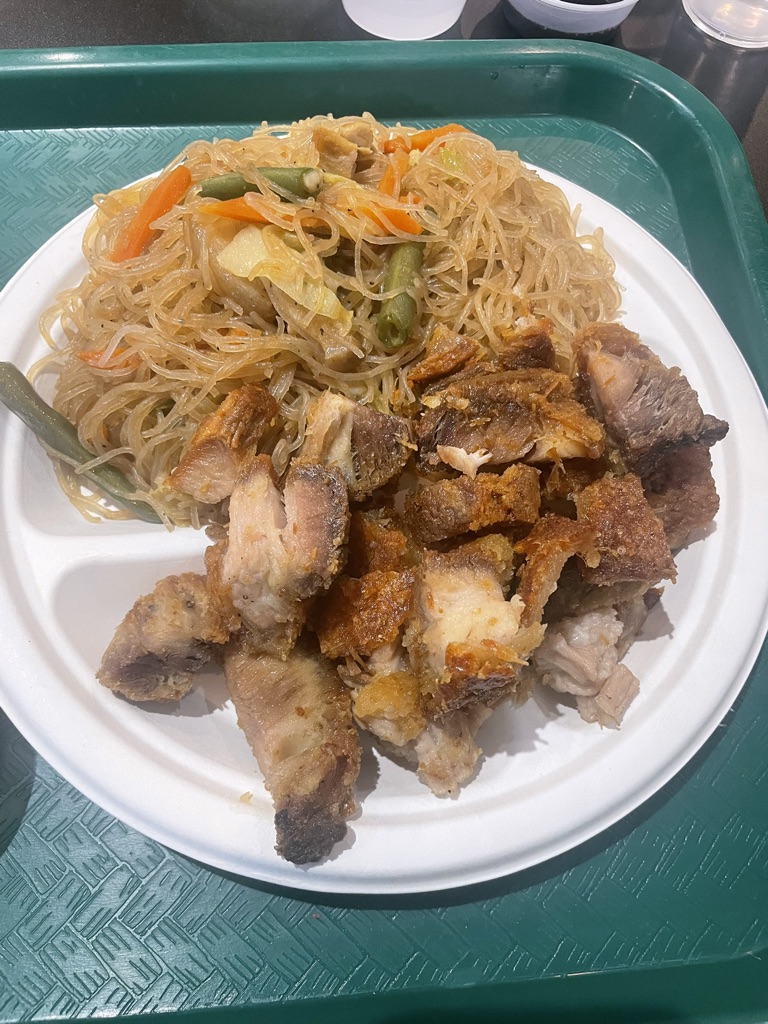 Menu: As I mentioned, they have a food court style display. They do have their usually items on their menu, but they also post rotating specials that could be available. We each ordered a combination plater where we could pick what we want. I ordered the crispy pork belly (of course) with pancit and sauteed veggies. The pork was very crispy, yet tender and fatty all at the same time! How it is supposed to be. The pancit was cooked well, nothing special, but it was delicious. They also had the spicy vinegar as the dipping side, which is my favorite. The sauteed veggies were a great side to pair everything together. Dad had asked for garlic fried rice, which I think was the best. Everything tasted like great home-cooked recipes. But I wouldn’t say it was amazing. The servings were a good side and I had a nice packed lunch meal to take home and enjoy again! They do have regular menus, but also daily specials. You can see the menu here!